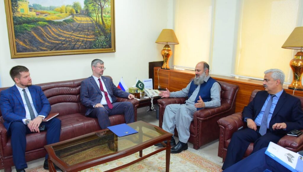 ISLAMABAD : Russian Ambassador to Pakistan, Albert Khorev, engaged in discussions with Federal Minister for Commerce, Jam Kamal Khan, aiming to enhance trade connectivity and tap into the true potential of bilateral trade.