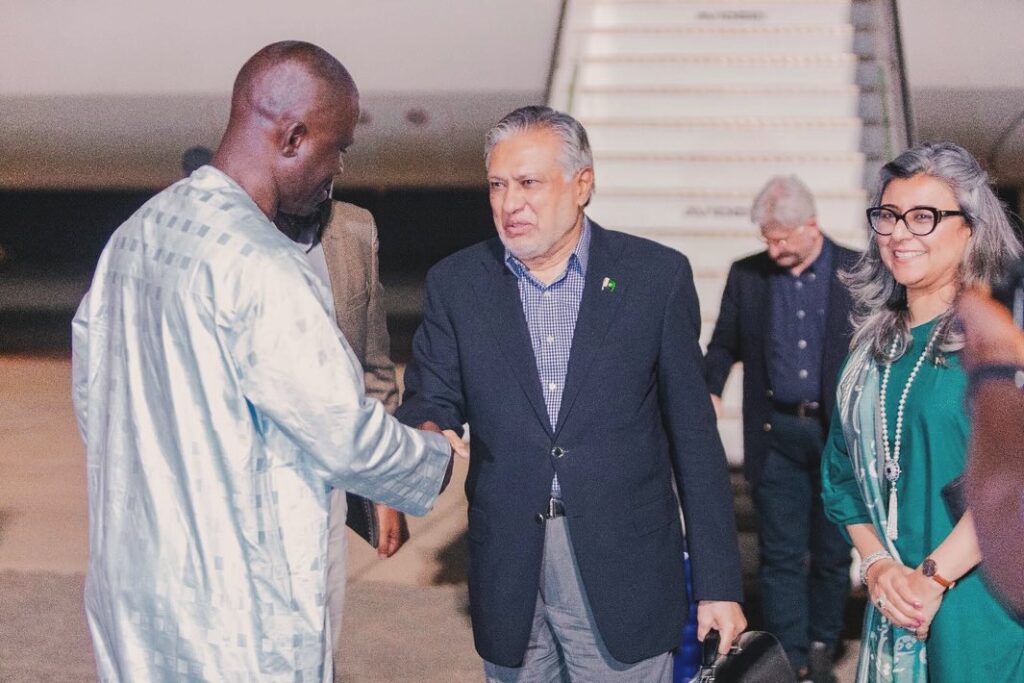 Islamabad : Deputy Prime Minister Ishaq Dar has reached Banjul, the Gambia to attend the 15th OIC summit.