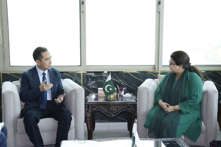 Minister of State for IT Shaza Fatima was talking to CEO Zong Mr. Huo Junli who called on her.