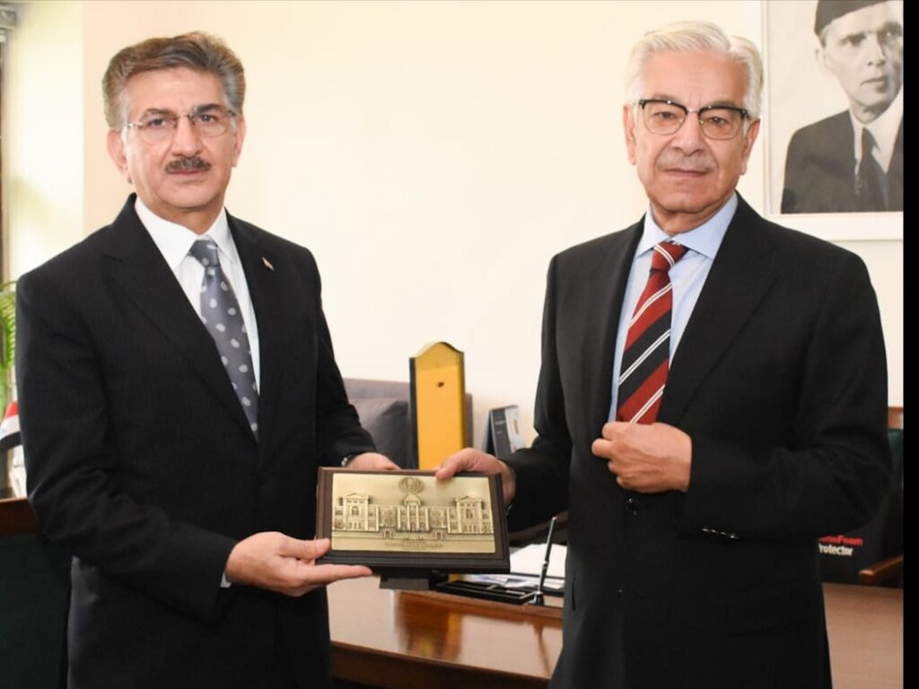 Islamabad : H.E. Mr. Hamid Abbas Lafta, Ambassador of Iraq called on Minister for Defence and Defence Production, Khawaja Muhammad Asif. Defence Minister said that both countries should work closely to share their experiences and build capacities of their Armed Forces.