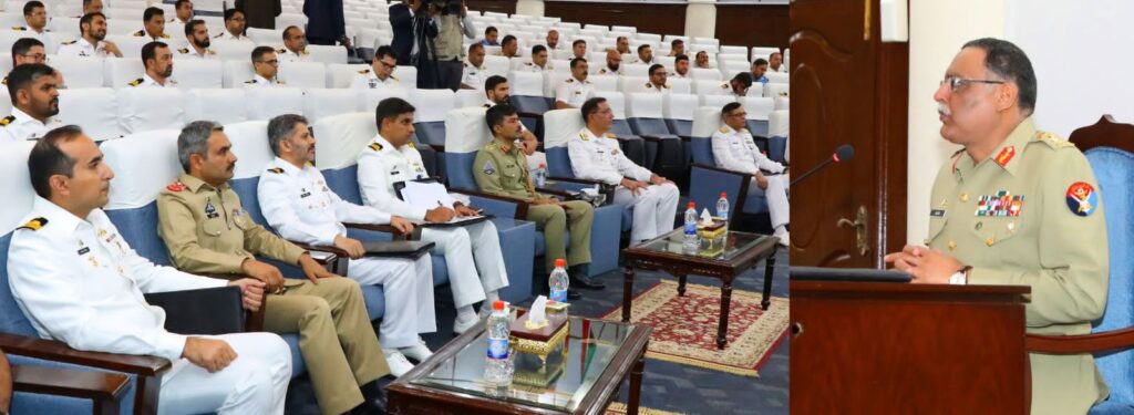 Rawalpindi : Chairman Joint Chiefs of Staff Committee General Sahir Shamshad Mirza, addressed the participants of 53rd PN Staff Course at Pakistan Navy War College, Lahore. Chairman JCSC highlighted the efforts of the Pakistan Armed Forces in amicably confronting multifaceted traditional and non-traditional security challenges.