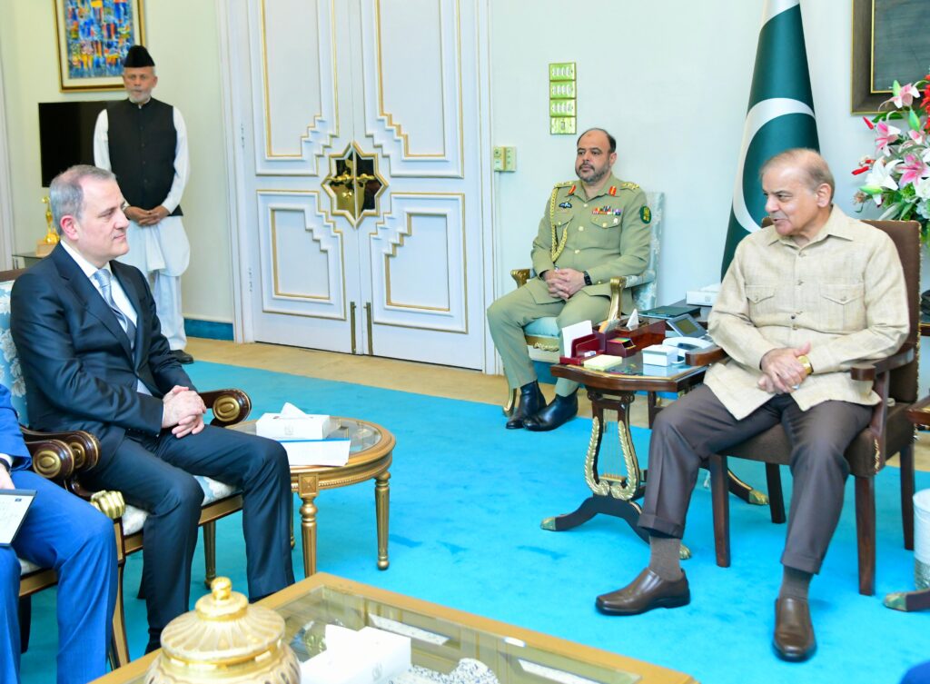 Islamabad : Mr. Jeyhun Bayramov, Minister of Foreign Affairs of Azerbaijan paid a courtesy call on Prime Minister Muhammad Shehbaz Sharif at the Prime Minister House.