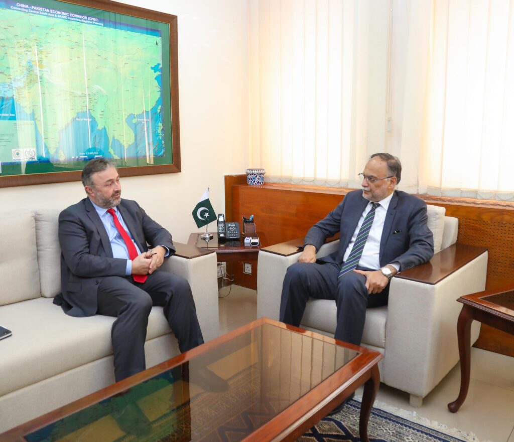 Islamabad :- Country Director World Bank, Njay Benhassine called on Minister for Planning Development & Special Initiatives Ahsan Iqbal to discuss the progress and current status of the ongoing projects supported by the World Bank. Additional Secretary and senior officials of the Ministry attended the meeting.During the meeting, Minister Ahsan Iqbal expressed his gratitude for the continuous support provided by the World Bank. He emphasized the importance of expediting the implementation of various project components and instructed the relevant authorities to accelerate their execution to ensure timely completion.The Minister also highlighted the comprehensive nature of the “5Es Framework” that encompasses all the important sectors. He noted that development partners, including the World Bank, regard this framework as crucial for achieving sustainable development and success. The Minister also discussed about the development of Pakistan’s 20 poorest districts, with a significant portion, 11 out of 20, located in Baluchistan. Minister Iqbal underscored the Government’s commitment to improving living conditions in these areas by enhancing food security, shelter, healthcare, and education facilities. He also outlined plans for large-scale infrastructure projects aimed at uplifting these districts.In his conversation with the World Bank Country Director, Minister Iqbal stressed the importance of trade as a cornerstone of Pakistan’s economic future. He emphasized that increasing exports is essential for national prosperity and called for a concerted effort to strengthen the country’s export sector. The Minister emphasized that Pakistan possesses an immense wealth of natural resources and minerals. He said that the Government is giving special attention to the exploration and development of these resources.The meeting concluded with a reaffirmation of the strong partnership between Pakistan and the World Bank, with both parties expressing a shared commitment to advancing the nation’s development agenda.