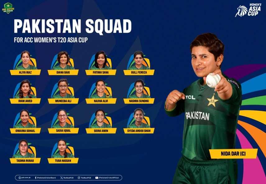 Lahore : The Pakistan Cricket Board has announced the Green Shirts’ squad for the upcoming ACC Women’s T20 Asia Cup, beginning in Dambulla, Sri Lanka, on 19th of next month.