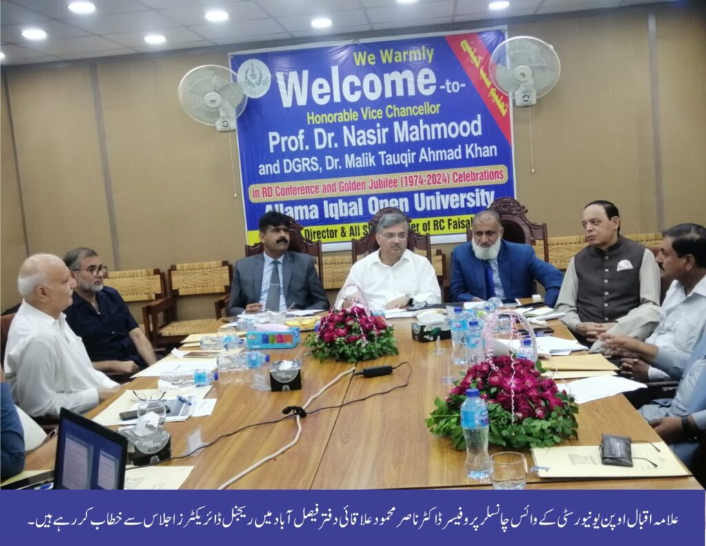 Islamabad : “Allama Iqbal Open University (AIOU) has started a campaign to bring out-of-school children into the education net, we are expanding our educational network in the remote and relatively low literacy areas of the country to achieve this goal. Regional offices and model study centres of AIOU will be established in every part of the country that lacks the basic facilities necessary for education”, said Vice Chancellor, AIOU, Prof. Dr. Nasir Mahmood, while presiding over the Regional Directors meeting at Faisalabad Regional Campus yesterday.