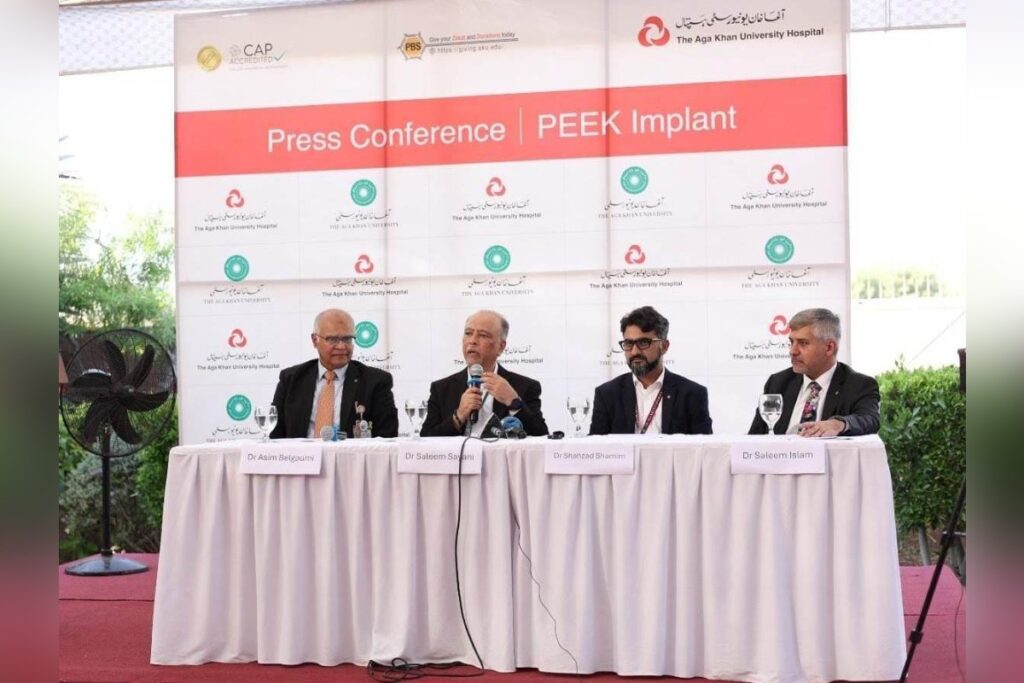 Karachi : The Aga Khan University Hospital (AKUH) has announced the successful implementation of 3D-printed PEEK implants, meticulously designed and manufactured by AKUH’s experts. This transformative leap in medical innovation aims to improve healthcare access, affordability, and outcomes for patients needing complex bone replacement surgeries in Pakistan.