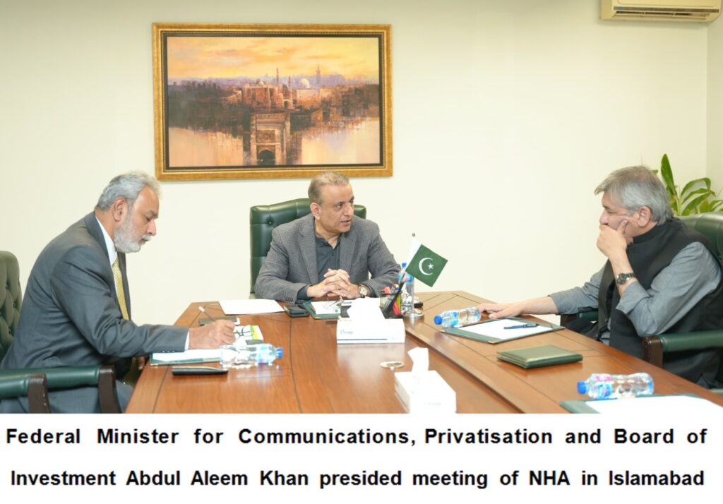 Islamabad : Adopting a zero tolerance policy in the National Highway Authority, Federal Minister for Communications, Privatization and Board of Investment Abdul Aleem Khan has directed for strict indiscriminate action against corrupt officers and officials in the department while in this regard, the Chairman NHA has been given a deadline of one week. In a high-level meeting of the National Highway Authority, Federal Minister for Communications Abdul Aleem Khan has directed a large-scale operation “clean-up” and said that no “Sifarish” should be accepted for those involved in corruption and only qualified, honest and capable officers should be posted on all seats. Federal Minister for Communications Abdul Aleem Khan observed that the NHA should work on a plan to remove barriers on motorways and propose electronic toll plazas so that citizens do not have to stand in long queues. He said that the Lahore, Sialkot and Kharian to Islamabad Motorway should have to be of 6 “lanes” instead of 4 because we have to plan keeping in mind the traffic pressure in the future. The high-level meeting of the NHA also discussed and took important decisions on the construction of highways from Baila to Awaran and Zhob to Loralai, as well as the construction of a new bypass on the Kala Sha Kaku to Multan Road and road from Sagian to Ravi bridge while the NHA’s plan to expand the Margalla Highway and connect it to the M-1 was also discussed. The meeting, chaired by Federal Minister for Communications Abdul Aleem Khan, discussed the ongoing projects of the NHA in all the four provinces and took important decisions in this regard including increasing the pace of work. Federal Minister Abdul Aleem Khan said that all highways and motorways should be connected to cameras and CCTVs so that every vehicle can be monitored. The meeting expressed that the provinces can also join the NHA in the construction of new roads and highways. The Federal Secretary for Communications and Chairman National Highway Authority gave a detailed briefing to the Federal Minister for Communications Abdul Aleem Khan on important departmental matters and various proposals were finalized.