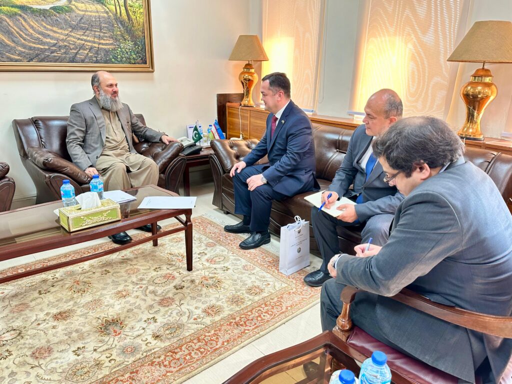 Islamabad:— The Ambassador of Uzbekistan to Pakistan, Alisher Tukhtayev, met with Federal Minister for Commerce Jam Kamal Khan to explore avenues for enhancing business opportunities and bilateral relations. The meeting emphasized trade, tourism, and cultural exchanges between the two countries.