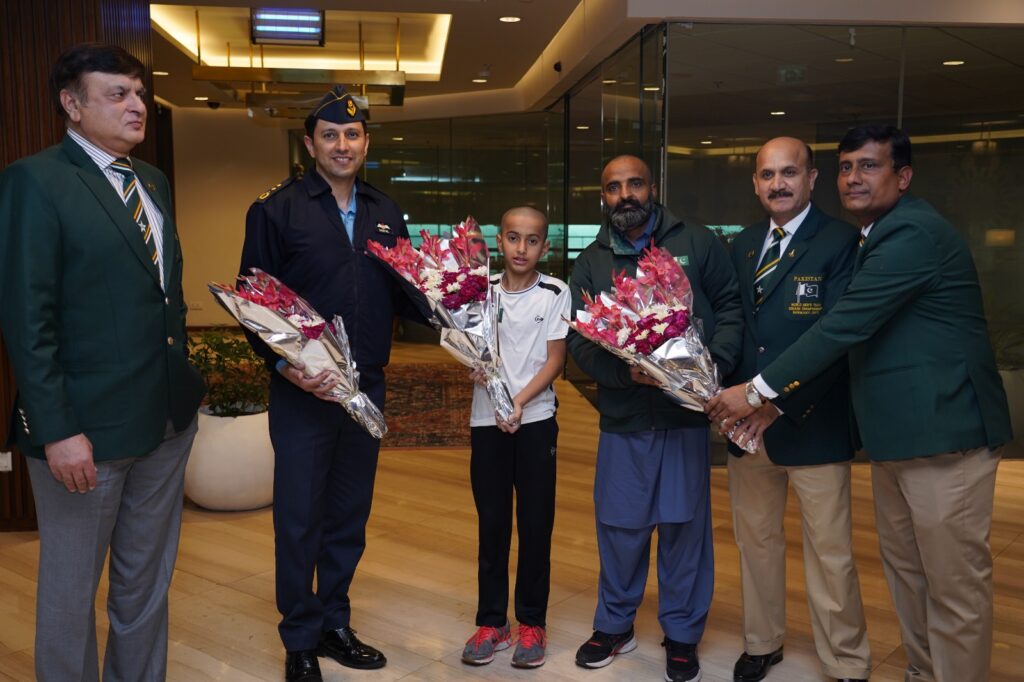 After the historic victory, the player was given a warm reception by Pakistan Squash Federation on his return at Islamabad International Airport today (31 Dec-24). Apart from the PSF Officials and staff, a large number of players, coaches and squash lovers also attended the welcome activity. The player was brought to Pakistan Squash Federation in the form of rally and was further accompanied to his residence in Rawalpindi City.