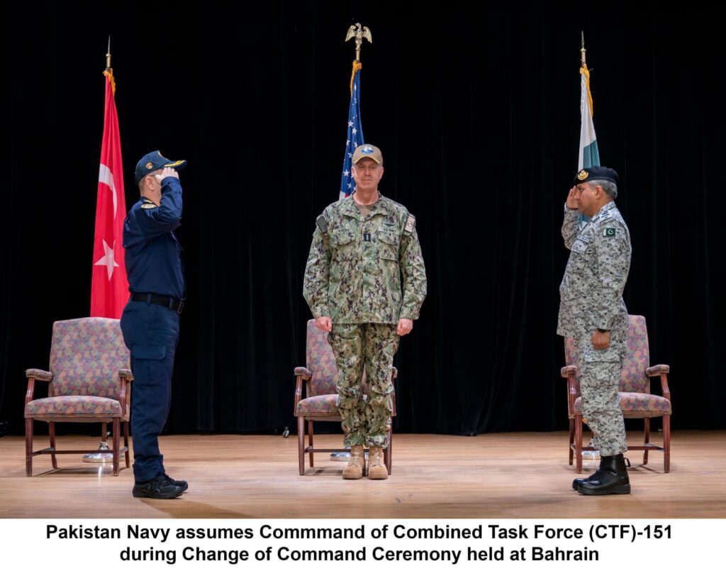 Bahrain : Pakistan Navy has assumed command of Multinational Combined Task Force 151 (CTF-151) from Turkish Navy during a Change of Command Ceremony held at HQ US NAVCENT, Bahrain. Commodore Sohail Ahmad Azmie of Pakistan Navy took over the command from Rear Admiral Rustu Sezer of Turkish Navy.