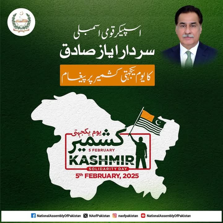 In his statement, Sardar Ayaz Sadiq emphasized the nation’s resolute and steadfast position on the Kashmir dispute, noting that Pakistan observes Kashmir Solidarity Day every year on 5th February. He reiterated Pakistan’s firm support for the people of Jammu and Kashmir in their struggle for the right to self-determination.