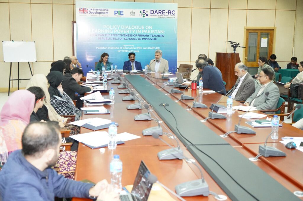 ISLAMABAD : The Pakistan Institute of Education (PIE) and the Data and Research in Education – Research Consortium (DARE-RC), a project implemented by Oxford Policy Management (OPM), jointly hosted a Policy Dialogue on “Learning Poverty in Pakistan: How Can the Effectiveness of Primary Teachers in Public Sector Schools be Improved?” at the PIE Auditorium, Islamabad.