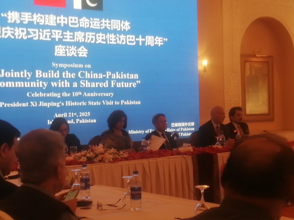 Addressing the participants of a symposium titled “Jointly Build the China-Pakistan Community with a shared future” held here to mark the 10th anniversary of President Xi Jinping’s landmark visit to Pakistan, Amb Jiang Zaidong said that President Xi Jinping’s visit to Pakistan was a historical event and it would long be remembered for cementing China, Pakistan friendship.