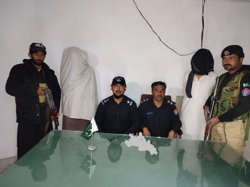 Peshawar : City police station Wana police received information during patrolling, that In Mughal village Wana, Aslam Khan son of Makha Gul and Izzat Ullah son of Aslam Khan along with two unknown persons fired and wounded Muhammad Irfan son of Hafiz Abdul Waris on his feet.On which District Police Officer Farman Ullah took strict action and immediately issued arrest orders.SHO Allah Nawaz of City police station Wana along with his team took strict action following the orderAs a result of which two accused Aslam Khan son of Makha Gul and Izzat Ullah son of Aslam were arrested and imprisoned with great strategy and urther investigation is underway.