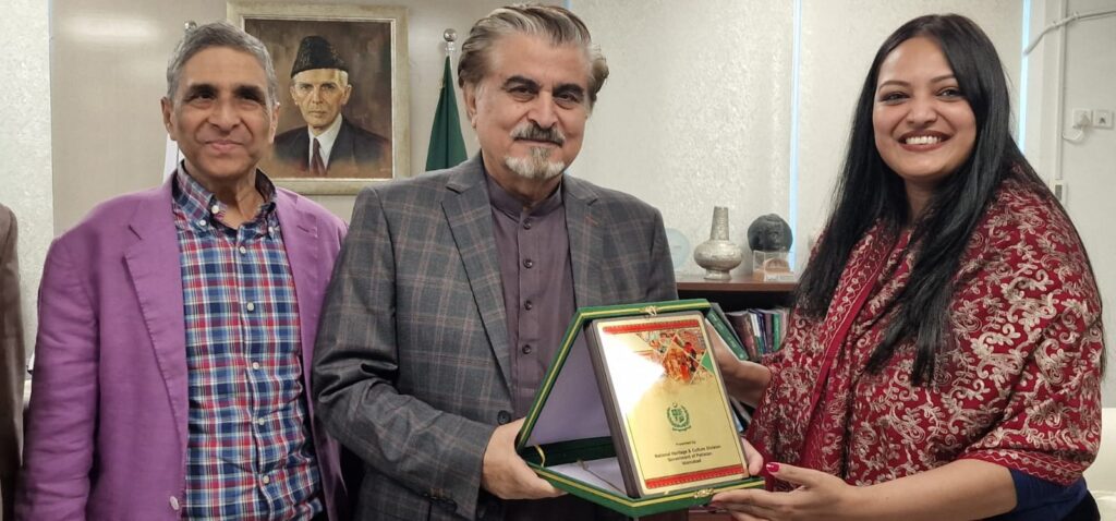 ISLAMABAD : Saira Peter, a British-Pakistani soprano and Sufi Opera Singer called on Jamal Shah, Interim Federal Minister for National Heritage and Culture Jamal Shah here at Division