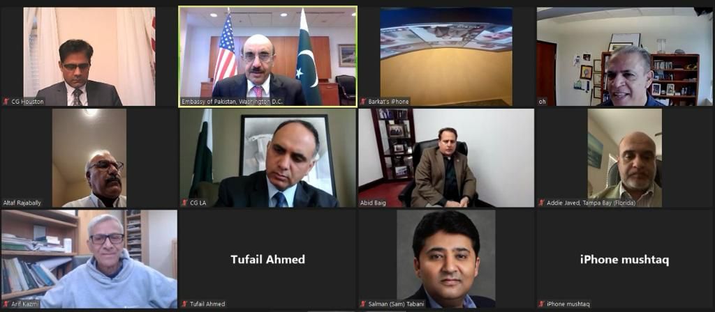 Washington, DC:The visit of Deputy Speaker New York State Assembly Mr. Phil Ramos to Pakistan has paved the way for establishment of sister-state relations with New York state. It was also decided by the two sides during the visit to take practical steps for strengthening bilateral cooperation in healthcare sector and creating greater opportunities for paramedical staff from Pakistan to serve in the United States. During a meeting of Ambassador Masood Khan with a delegation of American Pakistan Public Affairs Committee (APPAC), held virtually, it was informed that the US side had also agreed to facilitate Pak business community in organizing tradeshows and holding exhibitions in New York and other cities of the United States to showcase Pakistani products and strengthen ties between the two countries. The Ambassador was apprised by APPAC delegation that three committees, comprising representatives of Pak Chamber of Commerce, APPAC and Deputy Speaker’s Office, have been constituted to chalk out a roadmap for implementation of the decisions. Ambassador Masood Khan welcomed the outcome of the visit. He appreciated APPAC for playing a commendable role in strengthening trade and investment ties and promoting people-to-people contacts between Pakistan and the United States. Appreciating the idea of establishment of sister-state relationship with New York, Masood Khan said that the arrangement would provide as a strong framework for forging multifaceted long-term ties in diverse areas. He said that sister-state agreements between California and Punjab and Sindh and Georgia provide a blueprint for a strong partnership with New York. Calling upon the business community and APPAC to start working on the agreed proposal immediately, the Ambassador assured all possible support from Pak trade officers in crystallizing proposals to concrete set of actions with delineated timelines. Masood Khan also highlighted huge trade and investment opportunities that awaited US investments especially in IT, renewable energy, agriculture and extractive industries. Pointing out exponential growth of tech-startups in the country and the significant investment from VC firms from Silicon Valley, the Ambassador said that digitalization of economy and efforts to introducing IT based solutions for service delivery has created huge opportunity for profitable investments.“Contribute towards making Pakistan economically strong by scaling up your investments in the country,” said the Ambassador. APPAC members thanked Ambassador Masood Khan for his continued support and guidance to the organization in fulfilling its mission of serving the two countries and its peoples. Separately, the Ambassador also had a virtual meeting with the representatives of Pakistan Information and Cultural Organization (PICO) Arizona, Pakistan Society of North Texas(PSNT) and Pakistani American Association, Tampa Bay, Florida. Consul General Los Angeles Asim Ali Khan and CG Houston Aftab Ahmed Chaudhry were also present in the meeting. The representatives of various diaspora bodies briefed the Ambassador about social and philanthropic activities of the Pakistani community in their respective areas. The also highlighted the role being played by the community members at the county, district and the state level. The representatives of various bodies appreciated the efforts of Ambassador Masood Khan in brining all Pakistani organizations in the United States under one roof and providing them a platform to unite and work together for shared interests. Expressing satisfaction over the growing role of Pakistani community in the United States and their contributions toward US society, Ambassador Masood Khan urged diaspora bodies to work in unison and create synergies for greater impact of their activities.