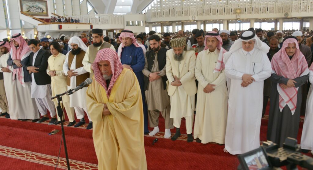 The Friday prayer at Faisal Mosque was also attended by the Ambassador of Saudi Arabia, H.E. Nawaf Said Al-Malki, President of the International Islamic University, Dr. Hathal Homoud Alotaibi , Vice presidents of IIUI, Diplomats of various Muslim countries , prominent religious and political figures, and thousands of faithful from twin cities.
