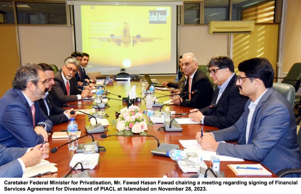 Islamabad : A Financial Services Agreement (FASA) was signed between Privatisation Commission and the Financial Advisor for divestment of Pakistan International Airlines Corporation (PIACL) in the presence of the Minister for Privatisation, Mr Fawad Hasan Fawad. The Consortium led by Earnest & Young were invited for contract negotiations as Financial Advisor after approval by the Privatisation Commission Board in its meeting on 10th November, 2023. The financial advisor will be responsible for restructuring and carrying out legal, technical and financial due diligence for the proposed divestment together with fair valuation of PIACL. The Minister expressed the hope and desire that the transaction will be carried out successfully despite the challenging economic environment. He assured the Financial Advisor of complete support of all institutions involved in the process to facilitate their work with a view to perform their task seamlessly in best possible interest.