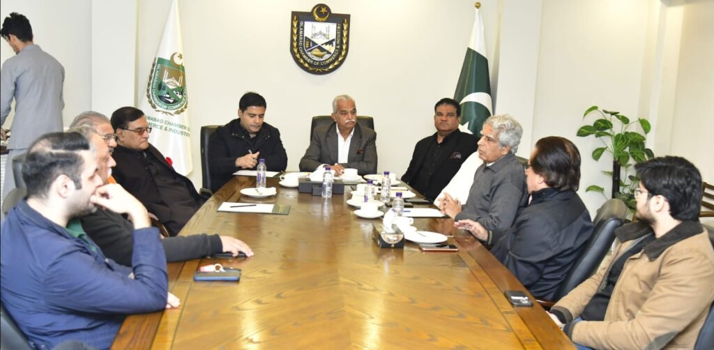 Islamabad : Ahsan Zafar Bakhtawari, President, Islamabad Chamber of Commerce and Industry (ICCI) said that that less than one month period is left in the next general elections, but most of the political parties have not announced the economic agenda of their election manifesto as yet, which is very important to guide the voters in electing the next government. He urged that all political parties should unveil the economic agenda of their election manifesto for the revival of the economy that would provide a direction to the business community and the investors and help them finalize their short and long-term business and investment plans for the country. He said this while talking to a delegation of traders and industrialists during their visit to ICCI. Khalid Iqbal Malik Group Leader ICCI, Khalid Javed, Zafar Bakhtawari & Nasir Khan former Presidents ICCI, Rafat Farid and others were in the delegation.