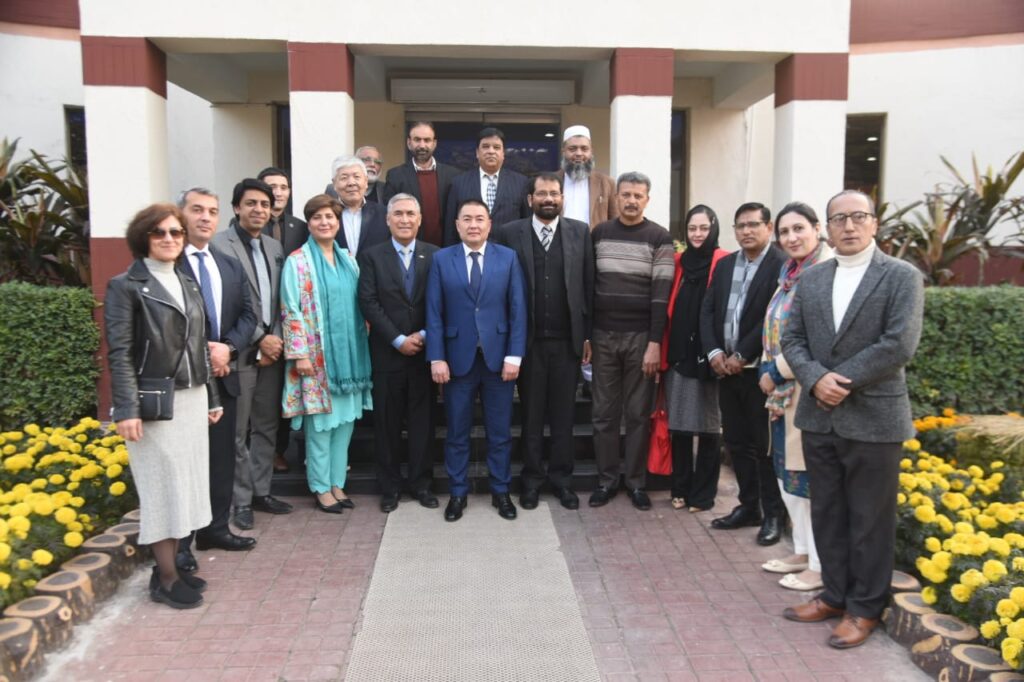 ISLAMABAD: Ambassador of Kyrgyz Republic H.E Ulanbek Totuiaev has said that Kyrgyz Republic is gateway for Pakistani business community to reach and benefit from Eurasian Economic Union, with a population of 180 Million.There is an excellent opportunity for rapid growth of interaction between the two countries in trade-economic, investment and cultural spheres.Ambassador said this in his keynote address at a forum “Pakistan Kyrgyzstan Relations – Present Status and Way Forward” hosted by Mr. Tazeen Akhtar of International Journal “Pakistan in the World”. Dean of Diplomatic Corp Ambassador Turkmenistan H.E Atadjan Movlamov, Ambassador Azerbaijan H.E Khazar Farhadov, President Rawalpindi Chamber of Commerce Mr. Saqib Rafiq, , Former Chairperson National Commission of Rights of Child Afshan Tehseen Bajwa, Chairperson COPAIR, Aamna Awan, Naveed Ahmad Khan, Rubab Tabassum were also present. Rector of Salymbekov University of Bishkek Mr. Esengaldi Zhumadilov and Vice President of the University also attended the forum. Dr. Ghulam Ali Mallah, Executive Direction Inter-board Coordination Commission IBCC, Mr. Ateeq Virk Director Virtual University Islamabad and Mr. Tayyab Chatha, Education Expert talked on the opportunities in education sector.Mr. Saqib Rafiq briefed the participants about business conducive environment in Pakistan in general and in Punjab in particular. He said we have set up business facilitation center in Rawalpindi only to help business community and start ups for easy business doing. He offered complete support to Kyrgyz businessmen for joint ventures and investment opportunities.