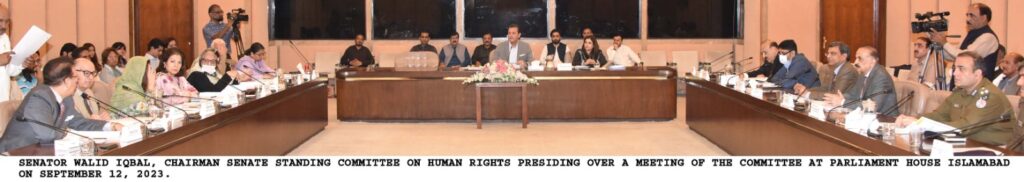 The meeting was attended by Senator Prof. Mehr Taj Roghani, Senator Dr. Mohammad Humayun Mohmand, Senator Seemee Ezdi, Senator Mushahid Hussain Sayed, Senator Abida Muhammad Azeem, Senator Muhammad Tahir Bizinjo, Senator Irfan ul Haq Siddiqui, Senator Falak Naz, Senator Quratul Ain Marri, Caretaker Federal Minister for Human Rights Khalil George and other senior officers of ministry and relevant departments were also in attendance.