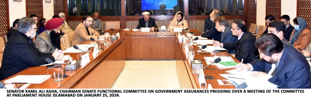 Islamabad: A meeting of Senate Functional Committee on Government Assurances was held here at Parliament House with Senator Kamil Ali Agha in Chair. The Senate Committee deliberated on the assurance provided by the then Minister Incharge of the Capital Administration and Development division regarding the regularization of services for teachers working in the education department of Islamabad Capital Territory on daily wages. Senator Kamil Ali Agha stated that the matter has been pending since 2016 and termed the delay as a bureaucratic hurdle. The Committee expressed utter disappointment on the delay and called it a failure of the government. However, the ministry contended that the report was placed before the cabinet with the prior approval of the Prime Minister but to no avail. The Committee deferred the matter for further report and deliberation, anticipating the new Government.Additionally, the committee discussed the assurance given by the then Minister for Federal Education and Professional Training and Minister Incharge for Capital Administration and Development Division concerning the construction of new educational institutions in Islamabad. Deputy Chairman Senate, Mirza Muhammad Afridi, remarked that education is a fundamental right of citizens, and approximately 2.5 crore population of the country is without education, making the delay in such matters unacceptable. The Officials replied that it will furnish a report after visiting all schools and colleges located in Islamabad Territory and then decide accordingly.While discussing the assurance provided by the then Minister for Capital Administration and Development division relating to the establishment of the Government College of Home Economics, Management Sciences, and Specialized Disciplines in F-11, Islamabad, the Principal of Home Economics College apprised the committee that the college has been up and running for the last one and a half years. However, the college lacks auditorium and computer lab facilities. The Ministry Incharge for Capital Administration and Development Division assured the committee that they will make an on-ground visit to the college and overcome the shortcomings confronting the Government College for Home Economics.Moreover, the matter of the procurement of MRI machines in Government Polyclinic Hospital was taken up. The Ministry apprised the committee that the Ministry of National Health Services, Regulation, and Coordination, and the Japanese Government have agreed to provide an MRI machine on a donation basis for Polyclinic Hospital. However, the installation and commissioning of the MRI machine in the hospital are expected by the end of 2024.In attendance were Deputy Chairman Senate Mirza Muhammad Afridi,Senator Gurdeeo Singh,Senator Kamran Murtaza and other senior officials of concerned ministries were also in attendance.