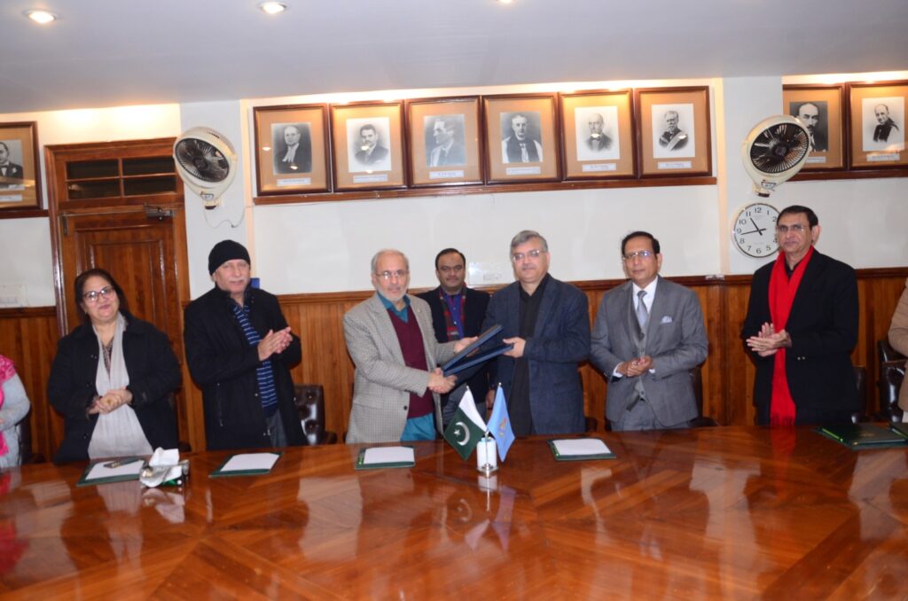 Islamabad : Centre for Languages and Translation Studies (CeLTS), Allama Iqbal Open University (AIOU) signed a Memorandum of Understanding (MoU) with the Institute of Punjabi & Cultural Studies, University of the Punjab. According to MoU, both institutions will work on Punjabi Linguistics, Punjabi Translations and parallel corpus. Vice Chancellor AIOU, Prof Dr. Nasir Mahmood and Vice Chancellor PU, Prof. Dr. Khalid Mehmood signed the MoU.On this occasion, Dr. Nasir Mahmood said that implementing MoUs within the time frame is necessary for the benefit of the community. Dr. Nasir Mehmood expressed the hope that the collaboration between the two institutions will benefit the people interested in Punjabi literature and culture. Vice Chancellor PU, Prof. Dr. Khalid Mehmood said that this collaboration is a positive step towards promoting and preserving Punjabi literature. He added that we are looking forward for more academic collaboration with AIOU. Dean, Faculty of Oriental Learning, PU, Prof. Dr. Ghulam Moeen-ud-din Nizami, Director CeLTS AIOU, Dr. Ghulam Ali, Director, Institute of Punjabi & Cultural Studies, Prof. Dr. Nabila Rehman and others were also present at the signing ceremony.