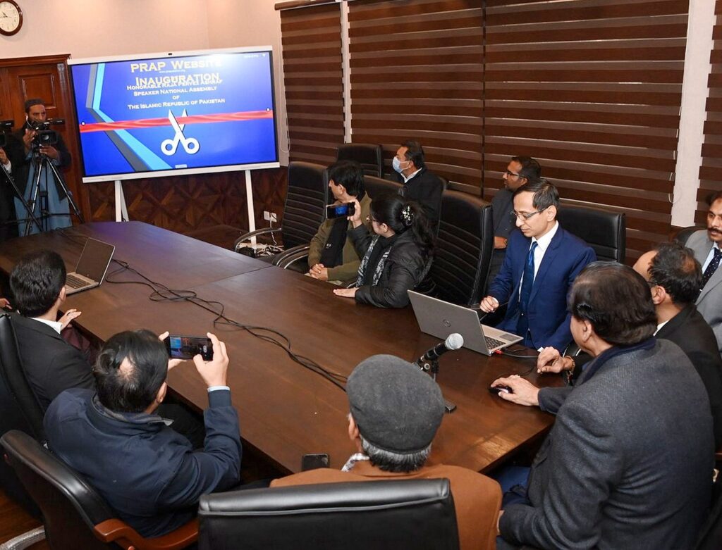 Speaker National Assembly Raja Pervez Ashraf launched the portal www.prapakistan.org by pressing the button.