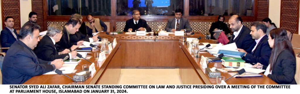 Islamabad : The Senate Standing Committee on Law and Justice convened at Parliament House, chaired by Senator Ali Zafar.