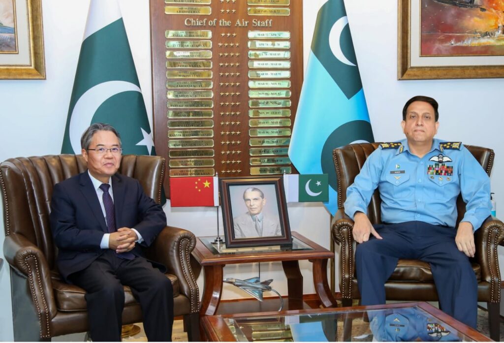 Islamabad : Ambassador of the People’s Republic of China, H.E. Mr Jiang Zaidong, called on Air Chief Marshal Zaheer Ahmed Baber Sidhu, Chief of the Air Staff, Pakistan Air Force. During the meeting matters pertaining to evolving geo-strategic environment and regional developments were discussed. The dignitaries underscored the necessity of revitalizing the framework for operational training across all domains, emphasizing the paramount importance of preparedness and seamless coordination in the face of evolving security challenges.