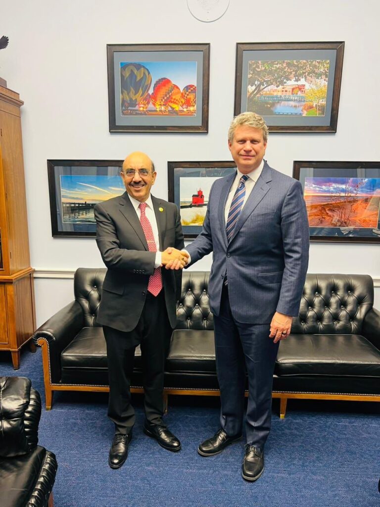 Washington : Pakistan’s Ambassador to the United States Masood Khan has held meetings with Chairman House Subcommittee on Oversight and Investigations Congressman Bill Huizenga. They held a wide ranging discussion on Pak-US relations, as well as regional and global situation.The Pakistani Envoy also held a with lawmaker David Trone and Discussed ways to enhance Pak-US ties and promote people-to-people exchanges. They also exchanges views regarding regional developments including in the Middle East.