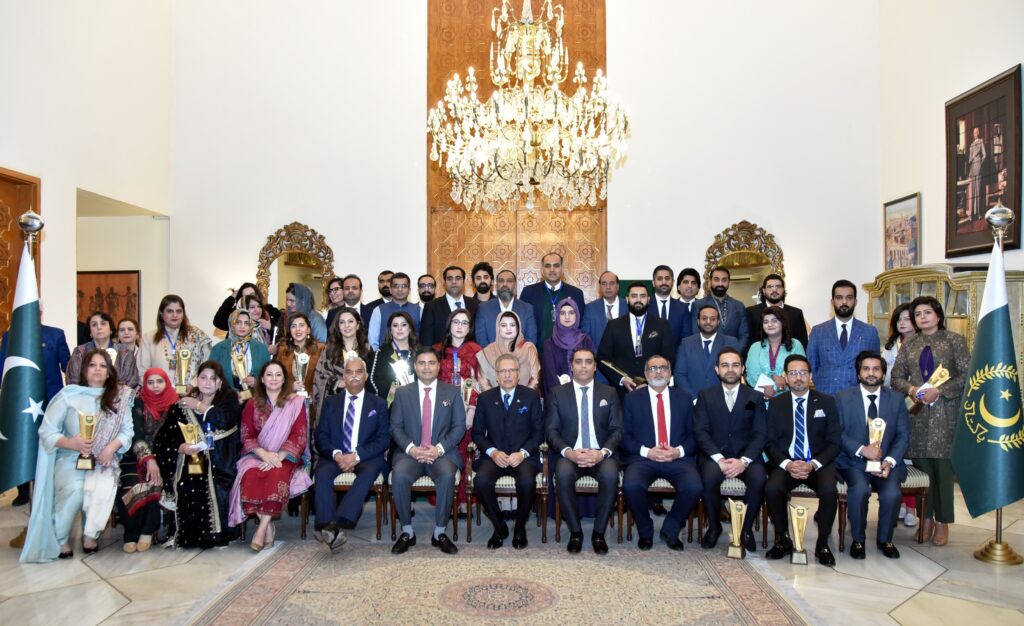 Islamabad : Dr. Arif Alvi, President of Pakistan urged that businesswomen should be provided equal opportunities to grow in the business field that would pave the way for better development of the economy and bring prosperity to the country. He said that enhanced participation of women in business and other fields is so important to reduce poverty and ensure sustainable development of the country. He stressed that the government should create better opportunities for the economic empowerment of women and focus on providing them with a safe and conducive workplace environment. He said this while addressing the award ceremony for businesswomen and young entrepreneurs organized by the Islamabad Chamber of Commerce and Industry at Aiwan-e-Sadr, Islamabad. President Dr. Arif Alvi lauded the efforts of the Islamabad Chamber of Commerce for organizing an award ceremony to recognize the role of businesswomen and young entrepreneurs and said that other chambers of commerce should also work for the economic empowerment of women and youngsters. He urged the Chambers of Commerce to support businesswomen in getting cheap loans from banks. He said that 20 to 40 percent of employees in SBP and private commercial banks are women, so chambers of commerce should also encourage their member companies to provide jobs to more women and special persons in their business institutions. He said that over 20 million children are out of school in Pakistan, and more than 50,000 schools are needed for their enrollment. However, as an alternative, mosques can be used to educate out-of-school children. Similarly, mosques can also be used as primary health centers. Speaking on the occasion, Ahsan Zafar Bakhtawari, President, Islamabad Chamber of Commerce and Industries said that to ensure the development and prosperity of the country, it is important to empower women in every sphere of life. ICCI is working hard to empower women and youth. He said that women are 50% of our population, but their participation in business is meager. Our women are very talented and the government should provide them with cheap loans to start their businesses. He said that IT should be given the status of industry to boost the IT sector and its exports, which are important for the country’s development and prosperity. He said that a certain quota for women entrepreneurs should be reserved in the seats of the Parliament. The government should allocate a plot to the Islamabad Women’s Chamber of Commerce to construct its building and play an effective role in promoting the interests of women entrepreneurs. He said that ICCI will continue to provide all possible guidance to women to start the business. Khalid Iqbal Malik, Group Leader of ICCI, said that the government should take steps to increase the literacy rate, open more vocational training institutes for skill development, and privatize the loss-making government commercial enterprises. Female entrepreneur Zubia Zubair said women should be brought into the national mainstream by providing ample opportunities. She said that women should be given adequate representation in all sectors. Women should also get an education and learn modern skills. Awards were given to 18 young entrepreneurs and 18 women entrepreneurs in the ceremony in recognition of their achievements in the business field.