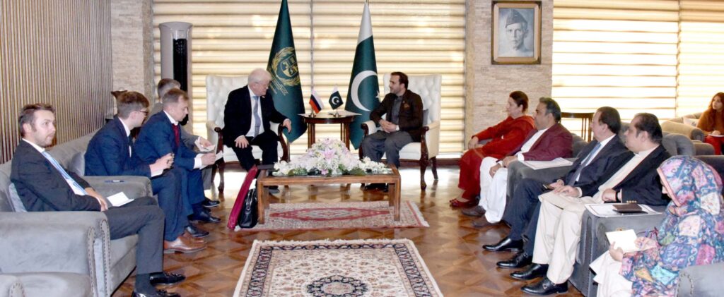 Islamabad : The Deputy Chairman of the Senate, Mirza Mohammad Afridi, along with a delegation of Senators, including Senator Fawzia Arshad and Danesh Kumar, hosted Senator Vladimir Chizhov and his team at the Parliament House, Deputy Chairman Afridi welcomed the delegate as the International Observer for the General Elections 2024, emphasizing Pakistan’s high regard for its relations with the Russian Federation. He conveyed warm wishes on behalf of Chairman Senate Muhammad Sadiq Sanjrani to the speakers of both houses of the Russian Federation. Acknowledging Russia’s support on Kashmir and Palestine issues, Deputy Chairman Afridi expressed Pakistan’s desire for a long-term, multidimensional partnership with Russia in areas such as trade , agriculture ,food security, energy, defense, and people-to-people contacts.