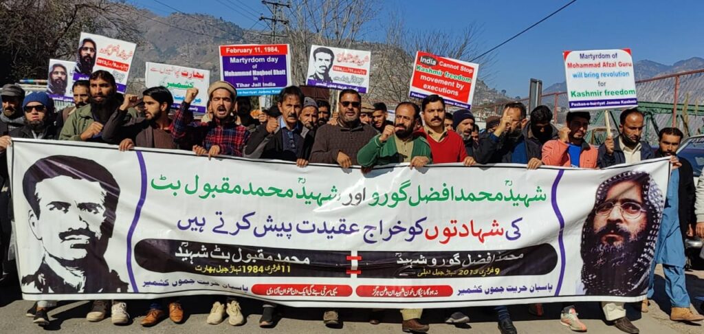 The speakers said that the Kashmiri people pay tribute to the great martyrs particularly Muhammad Afzal Guru and Muhammad Maqbool Bhatt.