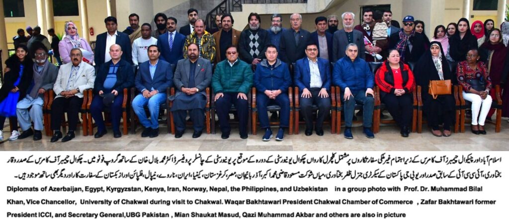 Islamabad : The Islamabad and Chakwal Chambers of Commerce and Industry organized a cultural caravan of foreign diplomats to the district Chakwal to show them the tourism potential of the area. Diplomats from Azerbaijan, Egypt, Kyrgyzstan, Kenya, Iran, Norway, Nepal, the Philippines, and Uzbekistan were in the cultural caravan. Zafar Bakhtawari, former President ICCI, and Secretary General, UBG Pakistan also accompanied the caravan.