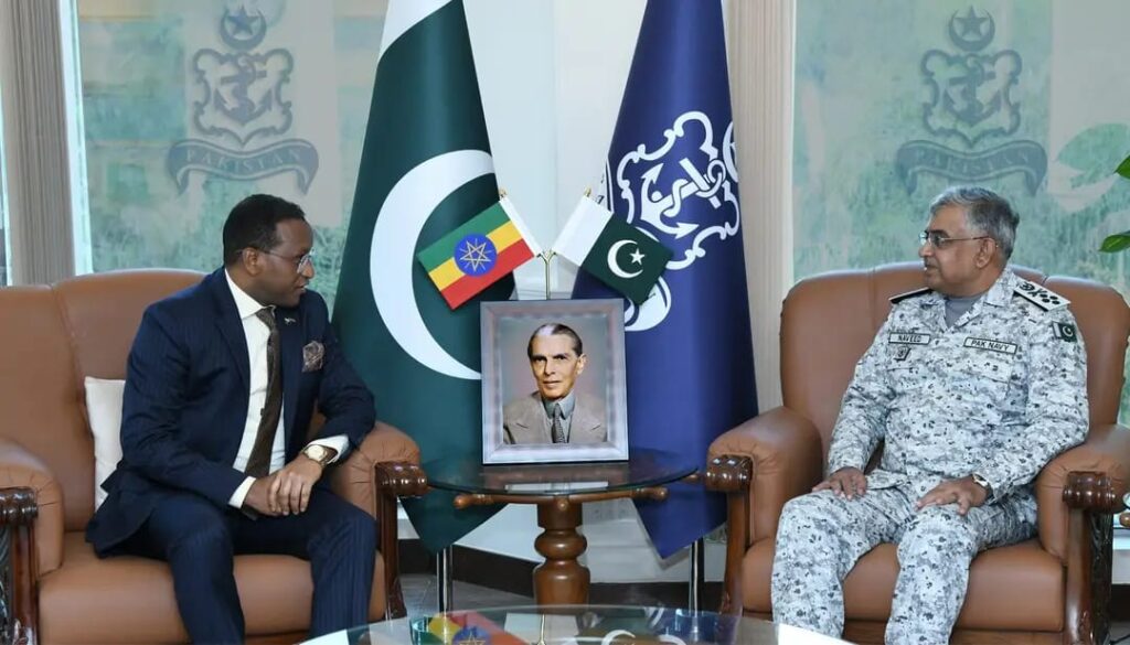 ISLAMABAD: H.E. Jemal Beker Abdula, Ambassador Extraordinary and Plenipotentiary of the Federal Democratic Republic of Ethiopia (FDRE) to the Islamic Republic of Pakistan, called on Chief of the Naval Staff H.E. Admiral Naveed Ashraf at the Naval Headquarters.