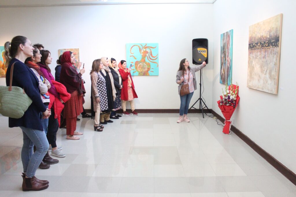 Islamabad : The Pakistan National Council of the Arts (PNCA), National Heritage and Culture Division, and The Embassy of the Hashemite Kingdom of Jordan hosted a special painting workshop and exhibition by Jordanian artist Suzan Alsaid titled “Touch of Love” Suzan has exhibited her paintings for the first time in Pakistan. This unique opportunity, titled “A Painting Workshop with Suzan Alsaid,” took place on 27th February in the morning at the PNCA premises in Islamabad.