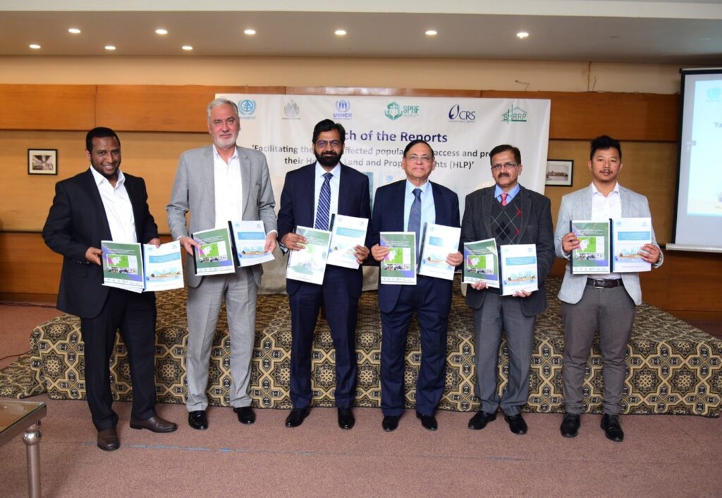 Islamabad – The United Nations Human Settlements Programme (UN-Habitat) launched two reports: ‘Climate Resilient Settlement Planning’ and ‘Protection of Housing, Land and Property Rights (HLP) for Flood Affected Populations’. The event was graced by Mr. Ahmad Kamal, Chief and Chairman Federal Flood Commission; Mr. Mohammed Adam, Country Manager, Catholic Relief Services, Pakistan; Mr. Najaf Malik Khan, COO, SPHF; Dr. Tanveer Ahmad, National Focal for Energy and Climate, UNHCR; and Mr. Minar Thapa, National Coordinator, SHRRP.