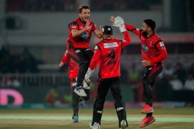 Rawalpindi : Lahore Qalandars finally secured their first win of HBL PSL 9 as they defended a competitive total against home-side Islamabad United at Pindi Cricket Stadium. After posting 162 on the board, courtesy of a half-century by Rassie van der Dussen, the Shaheen Shah Afridi-led attack put up a lethal bowling performance to dismiss Islamabad United for 145 runs.After being put to bat first, Lahore Qalandars posted 162-7 on the board in the first innings despite struggling with the regular fall of wickets. Naseem Shah backed up his maiden opening over in the previous game with another one today as Sahibzada Farhan failed to get off the mark in the first over.In the fourth over, Hunain Shah reaped benefit of the pressure mounted on the Lahore opening pair in the previous over by Naseem as Farhan (2, 12b) was caught by Faheem Ashraf at deep backward point.In the next over, Fakhar Zaman too departed after arun aball 10, including one boundary, when Colin Munro pouched a stunning catch at the rope while fielding at deep backward square. Shai Hope, batting at four, could only manage six off nine before he was caught by Jordan Cox to award Imad Wasim a wicket in the seventh over.With the team struggling at 30-3 in 6.4 overs, captain Shaheen Shah Afridi walked in to bat next in an attempt to arrest the imminent collapse . Shaheen joined Rassie van der Dussen in the middle to produce a vital 25-ball fourth-wicket partnership that yielded 46 runs.Shaheen smashed two sixes against Salman Ali Agha in the eighth over, announcing his arrival at the crease. Over the next three overs, Shaheen hit a maximum each until Shadab Khan removed his counterpart in the 11th over. The Lahore captain had to return for a quickfire 30 off 14 balls, showcasing four maximums.Sikandar Raza made just four off 10 before Azam Khan took an impressive catch to dismiss him. In the 16th over, Faheem conceded 17 runs courtesy of two sixes and a boundary. In the following over, van der Dussen (64, 44, 4x4s, 4x6s) brought up his half-century with a six.Ahsan Hafeez Bhatti (13, 8b, 1×6) was caught by Munro off Naseem to bring David Wiese to the crease. The seventh-wicket stand between Weise and van der Dussen yielded 31 off 15 to help Lahore get to a satisfactory total until the latter fell to Rumman in the penultimate over.Rumman picked up two wickets while Hunain, Naseem, Imad, Faheem and Shadab had one each.In return, Qalandars bagged five wickets inside the powerplay to mount pressure on the home side in their pursuit of 163. Jahandad took a brilliant catch while running back to long-on to dismiss Alex Hales for a two-ball duck, awarding Shaheen a first-over wicket.In the next over, Salman (4, 3b, 1×4) was caught behind off Zaman’s bowling. In the fifth over, Zaman shattered Shadab’s stumps courtesy of a lethal Yorker that breached his defenses.The last over of the powerplay saw Munro (15, 16b, 2x4s) being run out after Jahandad perfected the throw to the keeper, who removed the bails with the batter still shy of the crease. Imad Wasim, the next batter in, hit a four on his first ball but was caught at slips by substitute fielder Abdullah Shafique on the very next ball.Jahandad, introduced to the attack after the powerplay, backed up his earlier performance in the field with a caught and bowled to dismiss Jordan Cox (7, 7b, 1×4) as United fell deeper in trouble with the scoreboard reading 39-6 in 7 overs.Faheem Ashraf and Azam Khan (29, 19b, 3x4s, 2x6s) stitched a 35-run seventh-wicket partnership until the latter was dismissed by Ahsan. Naseem joined Faheem in the middle and the two batted together to add 42 to the total; the highest partnership for Islamabad in the innings.In the 16th over, Naseem (27, 16b, 2x4s, 2x6s) hit Shaheen for two consecutive sixes. Immediately after, Shaheen got his revenge as he castled his stumps to bag his 100th HBL PSL wicket – becoming the youngest and the fastest player to achieve the milestone.Zaman picked up the last two wickets, removing Hunain and Rumman, to dismiss United for 145 in the penultimate over, with Faheem stranded on one end at an unbeaten 41 off 31, with four boundaries and a six.Zaman accounted for four wickets, Shaheen picked up two while Ahsan, Jahandad and Wiese had one each to their name as Lahore won by 17 runs.