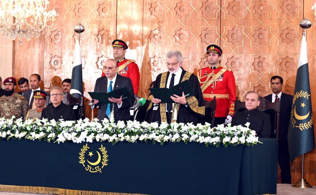 ISLAMABAD : Asif Ali Zardari on Sunday took oath of the Office of President of Pakistan.Chief Justice of Pakistan (CJP) Qazi Faez Isa administered oath of the office to President Asif Ali Zardari, in an oath taking ceremony, held at Aiwan e Sadr. The ceremony was attended by outgoing President Dr Arif Alvi, Prime Minister Muhammad Shehbaz Sharif, top military leadership, governors, chief ministers , Speaker of the National Assembly, parliamentarians, political leaders, diplomats and media persons.President Asif Ali Zardari became the 14th President of Pakistan to serve the country for a second term.Earlier, he had served the country as president during 2008-2013. He was elected for the constitutional slot by majority vote of the electoral college, comprising members of the Parliament and four provincial assemblies, on Saturday.