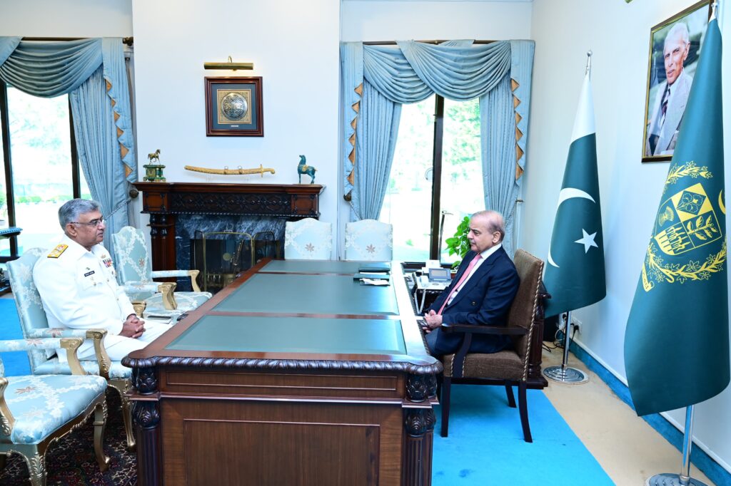 Islamabad : Chief of Naval Staff Admiral Naveed Ashraf called on Prime Minister Muhammad Shehbaz Sharif in Islamabad and discussed professional matters pertaining to Pakistan Navy.