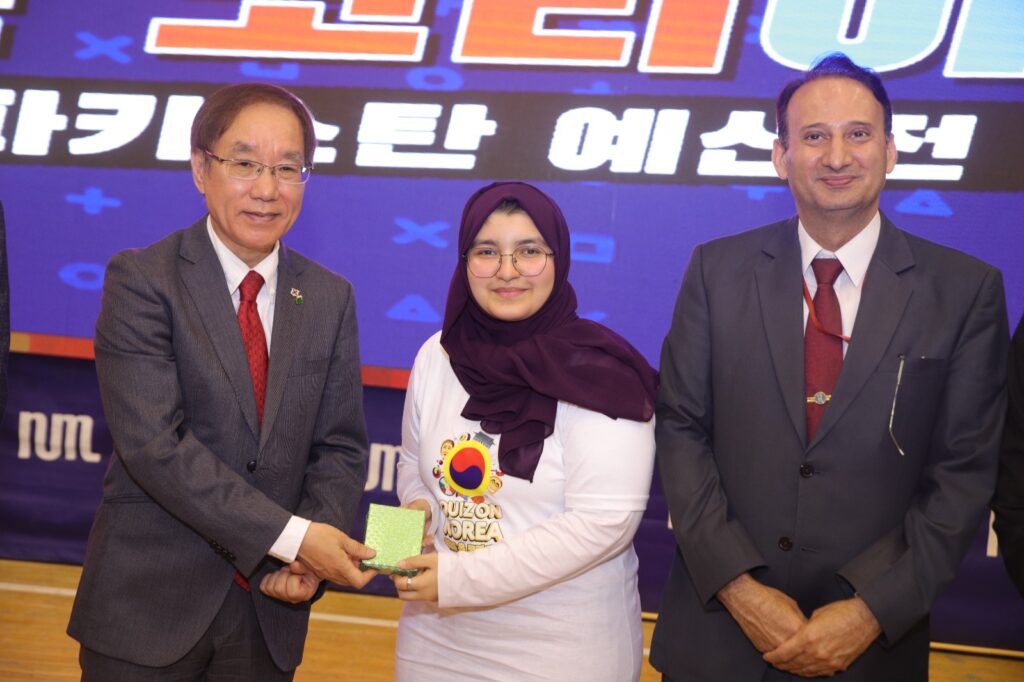 Around 100 candidates participated in the competition from all over the country. The event was held to enhance awareness and knowledge of Korean culture and language in Pakistan. Ms. Shumail Fatima BS Korean language & culture 8th semester won the competition, and she will represent Pakistan in the grand finale scheduled in Korea. All expenditures of the visit will be borne by the Korean government.